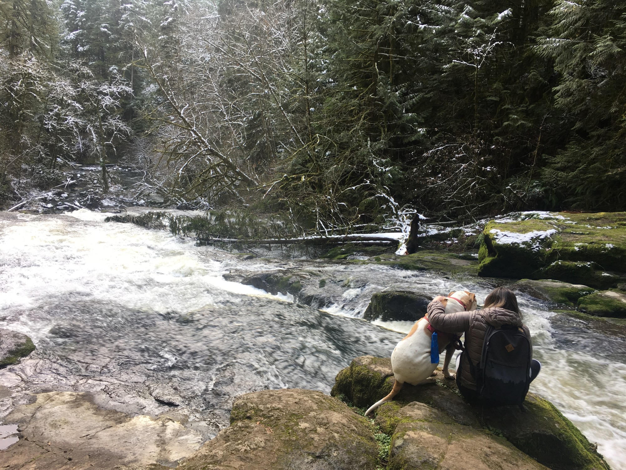 It’s been quite a while since I’ve written regularly, since my Mom was finishing her grad degree. She is FINALLY free, and we have so many wonderful adventures to catch up on. One of my new favorite dog-friendly adventure spots is in the beautiful town of Camas, Washington. Lacamas Park is an easy 45-minute drive out of Portland, and the Lacamas Creek Trail is a 4.3 mile loop hike. The hike has light elevation gain and boasts incredible waterfall and wildflower views. Since it’s been forever, we have pictures of this hike from our winter and spring adventures for you to enjoy.